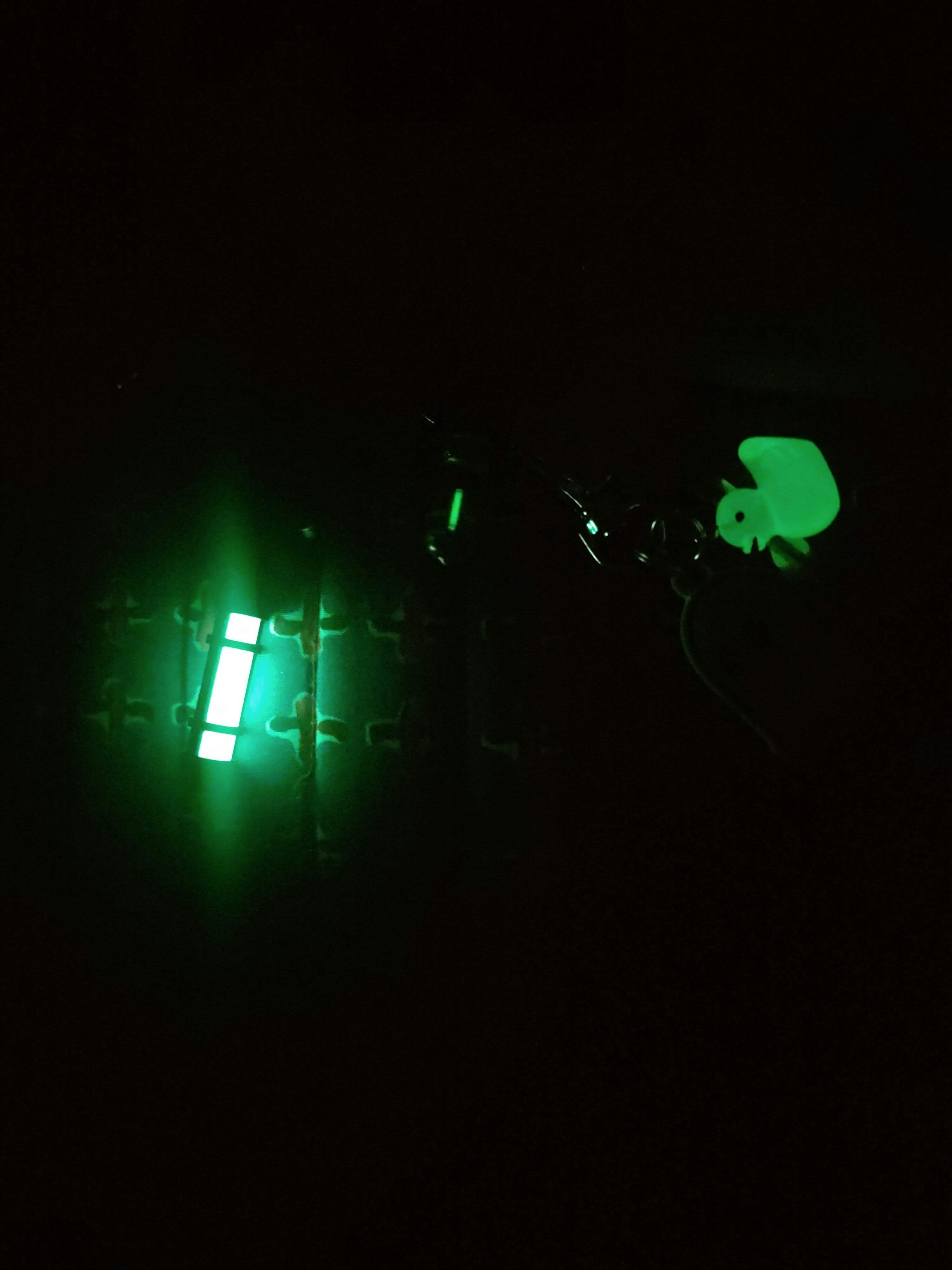 I love my A3 glow fob! I also ordered a five pack of glow pellets and the only thing I can critique is the green, lemon and lime colors look very similar to me. Other than that I love them. I am actually making my own fobs for the pellets but they won't be as cool as my A3 fob. The glow lasts for several hours! I think my expectations for anything GITD are too high because no matter what it is I'm never completely satisfied whether it's a fob a zipper pull or my watches , including my tritium tube models,always leave me wanting more glow. But I have to say out of everything I own that's GITD my Tec Accessories items are definitely the best glow quality in brightness and longevity! I will definitely buy more products soon! I'd love to get some glow sheets for knife scales! In the pic you can see my A3 fob then my GloRhino tritium fob and Ivan my trusty rubber ducky from Chernobyl Look at the initial brightness of my A3 fob!